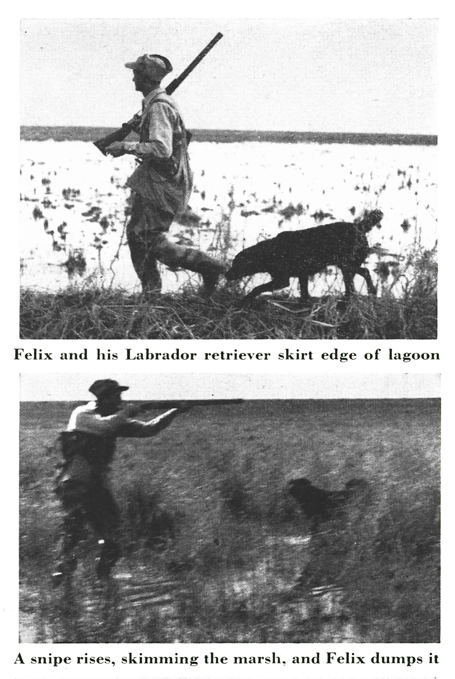 Finding snipe should have been a cinch since there were plenty of them on the huge Barrow Ranch which Joe helps manage. They had feed and cover, and nobody had shot at them for years. The set-up was perfect, except that a heavy rain had fallen the previous day. Water stood in the rice fields, in the marsh, everywhere.