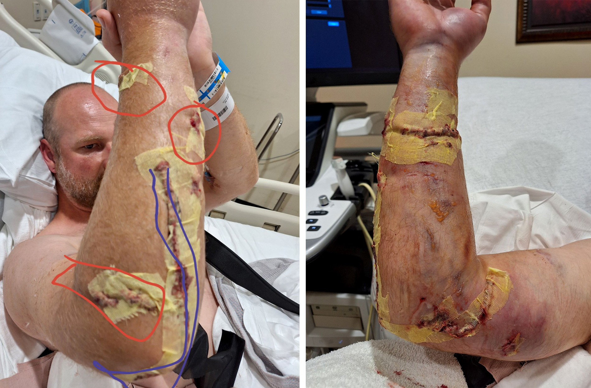 In a Facebook post shared yesterday, Georgitis’ close friend Laurel Black gave an update on his condition. Black said that although his ulna had been snapped in half and his radius badly fractured, doctors were able to save his arm and hand after multiple surgeries. Because Georgitis does not have medical insurance, Black and other members of the local diving community are working to launch a GoFundMe page for him. She also shared his Venmo account information in Sunday’s post.