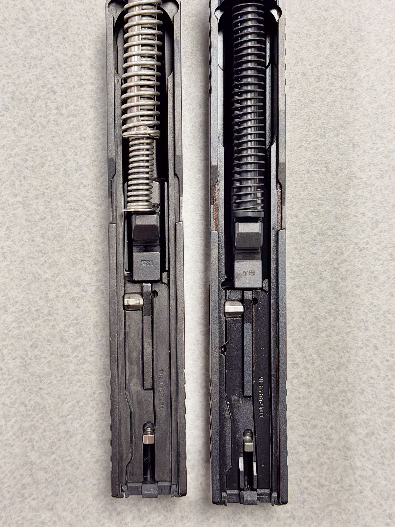 Glock made some changes to the internals of the Gen 6 series as well. Two in particular, the redesigned extractor system and going back to a single-stage recoil spring assembly were done to improve reliability, while the changes to the cuts on the underside of the slide were meant to inhibit modifications that allowed previous Glocks to run full-auto. As you probably know that barrier didn’t last for a day before it was breached.