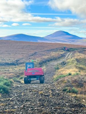Since entering service in October 2024, the C50R-5ATV machines have supported fencing installation works at wind farm developments and transported materials during ground investigation operations. The machine’s 180° rotating skip also allows materials to be unloaded precisely without repositioning the carrier – a useful feature when operating on narrow access tracks or confined work areas.