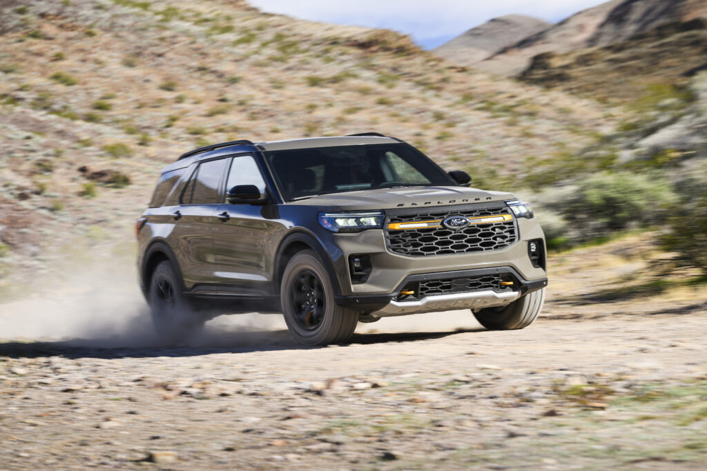 The Tremor edition isn’t just a normal Explorer with orange trim (and that isn’t orange; it’s called Electric Spice). The package brings real off-road changes:
