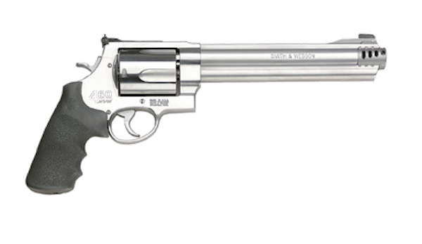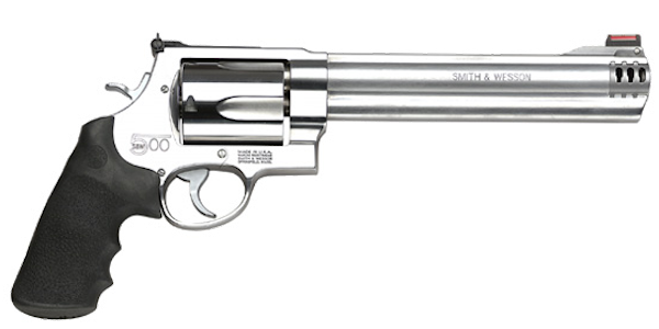 Any cartridge that shoots a bullet measuring a half-inch across is a wicked cartridge. Not only does the 500 Smith & Wesson push a large diameter bullet, but it also pushes about the heaviest projectile you can fire from a handgun. With a 440-grain bullet, the 500 Smith & Wesson generates more than 1700 foot-pounds of energy at the muzzle, and that big bullet leaves the muzzle at 1325 fps. Of course, this is what you get when you load a .50-caliber cartridge to a staggering pressure of 60,000 psi, which is almost twice the pressure of the 50 AE. With a power factor of 583, the 500 Smith & Wesson outperforms the .45/70 out of a revolver. Smith & Wesson offers several revolvers for this beast, with barrels ranging from 3.5 to 10.5 inches.