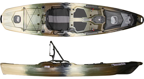 There is no runner-up award for the best overall, but if there were, the Bonafide RS 117 would win it. I was thoroughly impressed with the stability, maneuverability, and fishability of this boat during the testing. The layout is very versatile and offers customization options. Starting from the front of the boat, there’s a covered cavity in the bow that has a sleeve to hold your paddle. As you move to the deck, there’s a dry storage box for valuables, but still enough room for standing and casting. The RS 117 comes with a great seat, standard rear tank well, and removable rear access panel.
