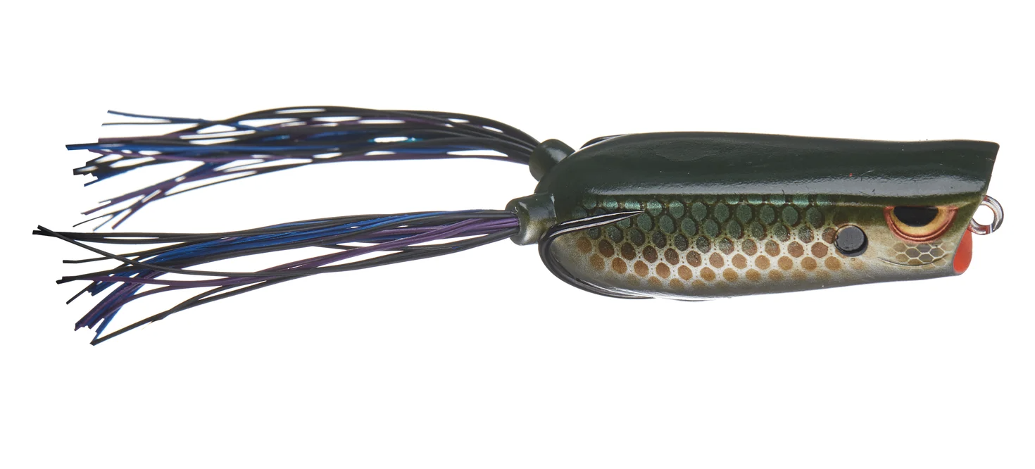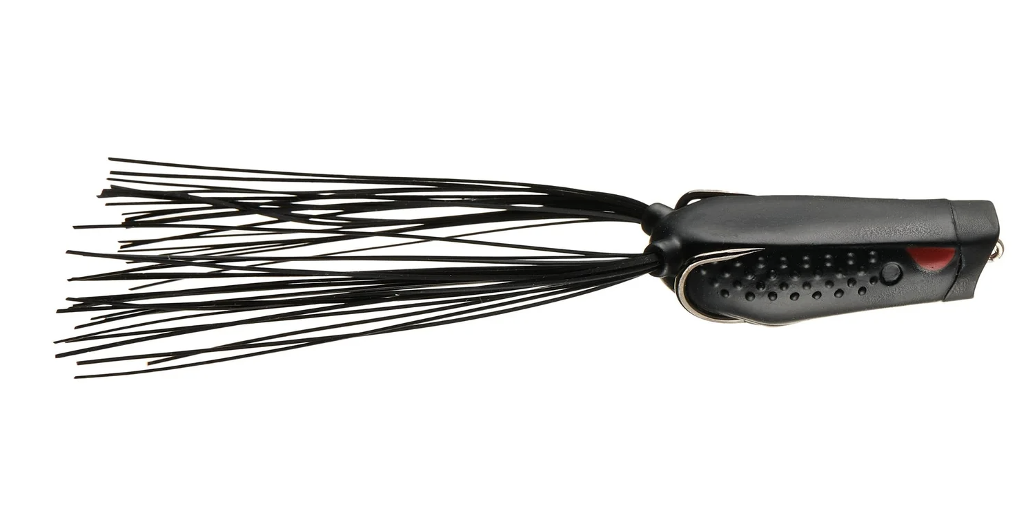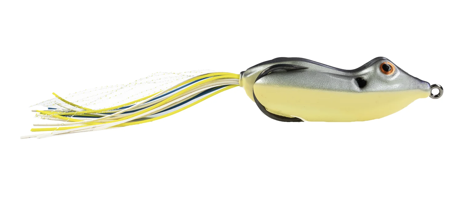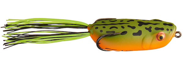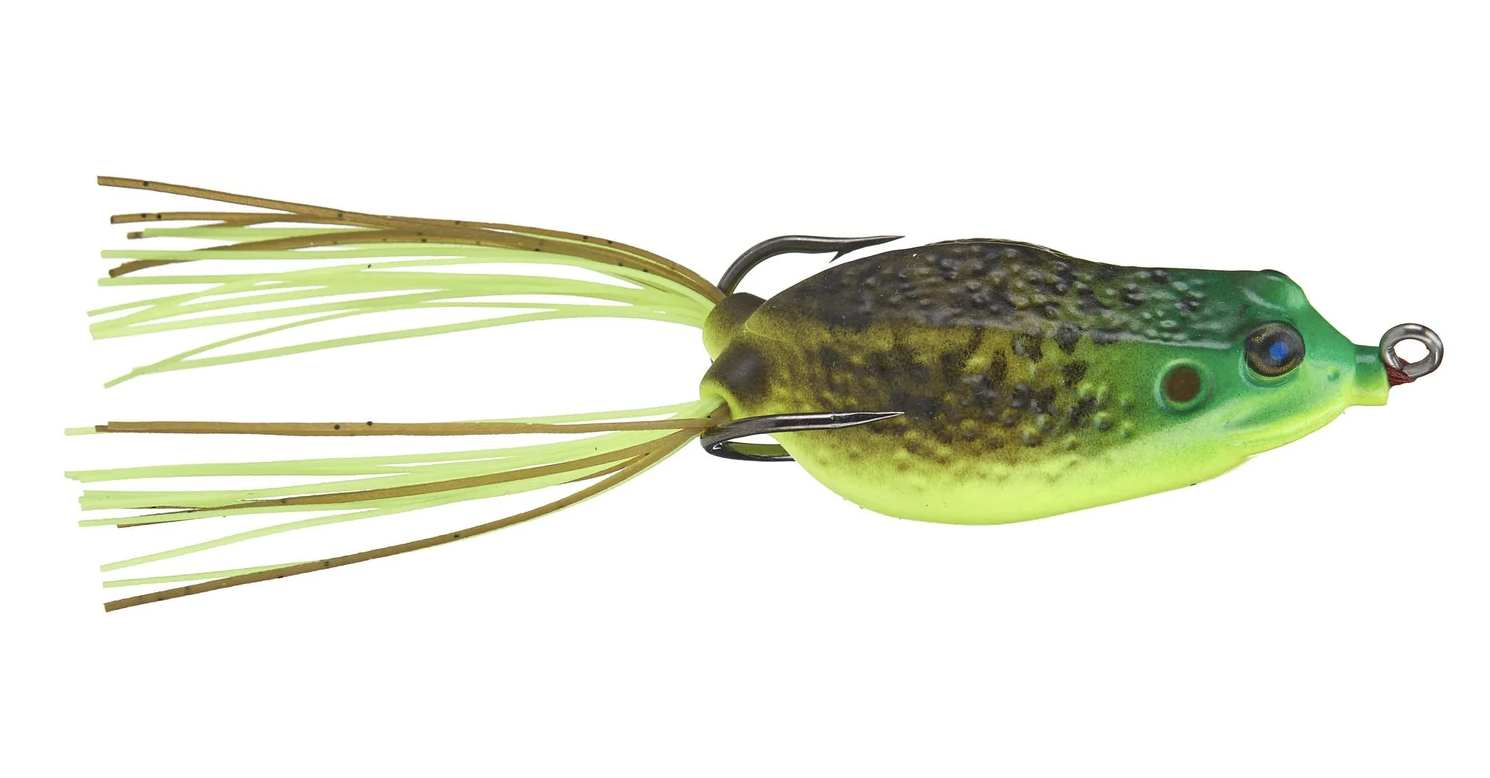 Hollow-body frogs are designed to float and be worked along the surface in a side-to-side or popping manner. These baits typically have skirted legs and a two-pronged, pre-rigged hook. This is what we’re looking for when evaluating hollow-body frogs: