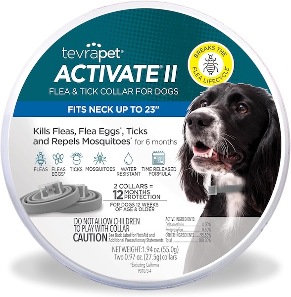 While many collars are just water-resistant, the TevraPet Activate II Flea and Tick Collar is completely waterproof. That added protection can be helpful for water-loving dogs or even those who frequently get bathed with their collar on. Each collar in this two-pack lasts for six months, providing up to 12 months of protection for a single dog.