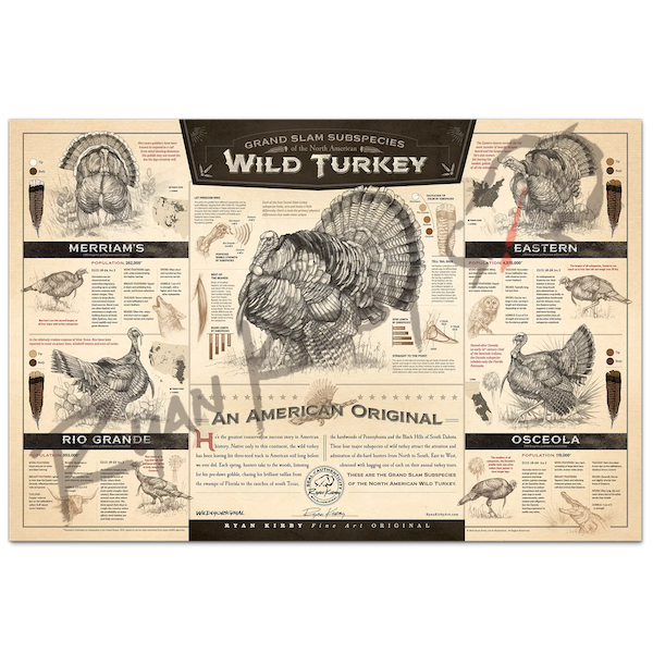 Ryan Kirby is one of the greatest wildlife artists out there, and is a longtime illustrator for Field & Stream. So of course, we had to spotlight one of his incredible works of art. This wild turkey print features original drawings along with facts about the four Grand Slam wild turkey subspecies. Printed on quality natural paper, it comes signed by Ryan Kirby and can be framed for an additional cost.