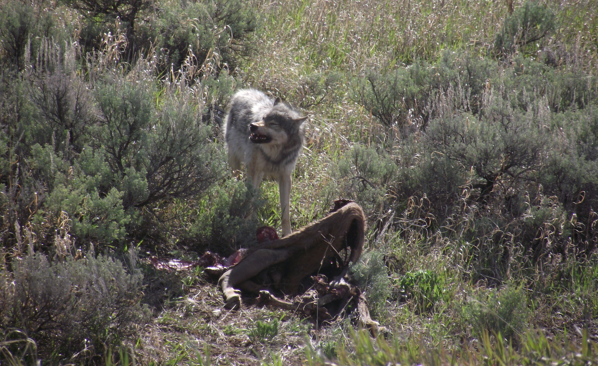 “In the winter months [in Yellowstone], wolves are primarily feeding on adult elk and bison,” she says. “Usually elk and bison are very weak at this time of year due to the harsh winter conditions, so the wolves will monopolize on that. In the summer months, most of their prey is very strong and healthy, so wolves are primarily feeding on neonates — newborn elk and bison calves, and sometimes even pronghorn calves. They’re also doing a lot of solo hunting in the summer months, so they’re really taking advantage of those smaller rodents as well.”