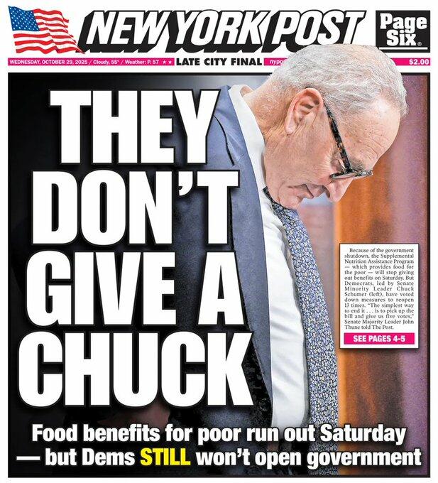 “Democrats have spent a month playing with people’s livelihoods because the far-left wing of their party won’t let them accept a clean, nonpartisan CR. If they want to prevent damage from their shutdown, then they can end their shutdown. The bill is right there at the desk,” Senate Majority Leader John Thune wrote on X.